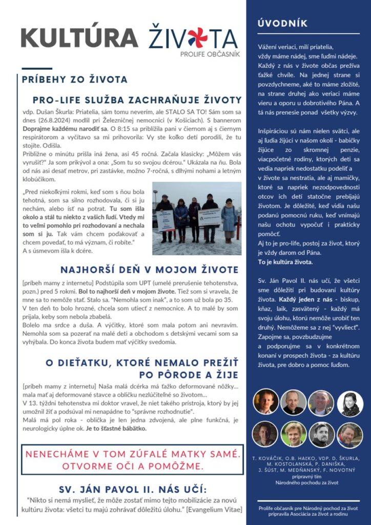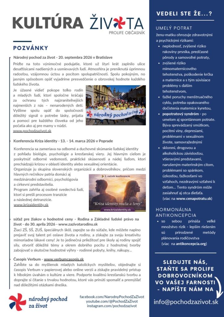 Aj tento rok nás Kultúra života srdečne pozýva zapojiť sa do viacerých zmysluplných podujatí a aktivít.